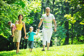 Szczęśliwa młoda para z dziećmi zabawy w parku