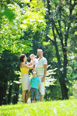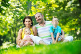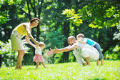 Szczęśliwa młoda para z dziećmi zabawy w parku