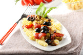 Sałatka makaronowa z tuńczykiem, pomidorkami cherry i olivs