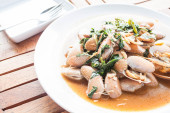 Mieszać smażone małże