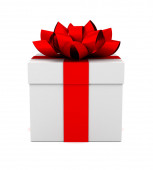 White gift with red bow