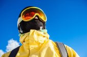 portret młodego afrykańskiego mężczyzny w różowej, żywej kominiarce odwracając wzrok, koncepcja zimy