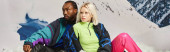 piękna para pozowanie razem noszenie różowe kominiarki i stylowe okulary przeciwsłoneczne, koncepcja zima
