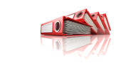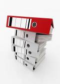 Biuro czerwony spinacz folderów. 3D render ilustracja na białym tle