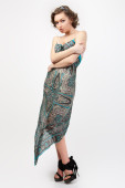 Piękne kobiety modelka w Wieniec kwiatów z bliska portret.