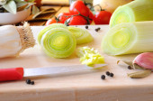 Zdjęcie "Szef kuchni cięcia pora na deski do krojenia" może być wykorzystywane do celów osobistych i komercyjnych zgodnie z warunkami zakupionej licencji Royalty-free. Obraz jest dostępny do pobrania w jakości wysokiej rozdzielczości do 5760x3840.