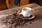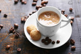 Filiżankę kawy i smaczne ciasteczka, na drewnianych tło