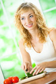 młoda kobieta uśmiechający się jedzenie muślinu w domu
