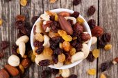 Mieszanych orzechów na białym talerzu.