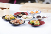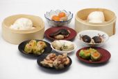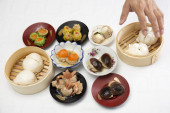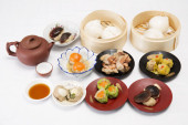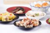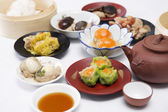 Grupa strumienia Dim Sum Chiński żywności i gorącej herbaty