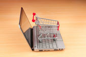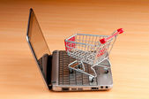 Zakupy online z komputerem i koszykiem