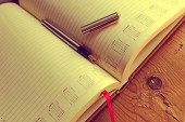 Stare wspomnienia pamiętnik z wieczne pióro na drewnianym stole 3