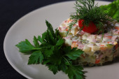 Zdjęcie "Sałatka riussian służył w tablicy" może być wykorzystywane do celów osobistych i komercyjnych zgodnie z warunkami zakupionej licencji Royalty-free. Obraz jest dostępny do pobrania w jakości wysokiej rozdzielczości do 5760x3840.
