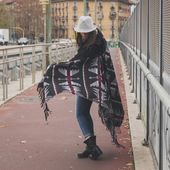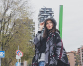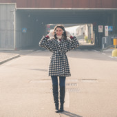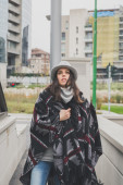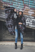 Piękna młoda brunetka pozowanie na ulicach miasta