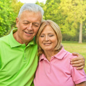 portret uśmiechający się starszy kobiety w parku