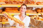 Zdjęcie "Piekarz kobiet sprzedających chleb w piekarni" może być wykorzystywane do celów osobistych i komercyjnych zgodnie z warunkami zakupionej licencji Royalty-free. Obraz jest dostępny do pobrania w jakości wysokiej rozdzielczości do 5760x3840.