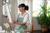 Zdjęcie "Piękna i kreatywna młoda azjatycka artystka mierzy swój obraz pędzlem, ciesząc się malowaniem na płótnie relaksując się w zielonym parku." może być wykorzystywane do celów osobistych i komercyjnych zgodnie z warunkami zakupionej licencji Royalty-free. Obraz jest dostępny do pobrania w jakości wysokiej rozdzielczości do 5760x3840.