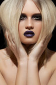 portret uroda moda piękne modelki twarzy makijażem ciemne