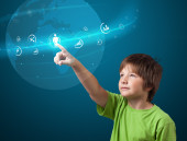młody głowę patrząc na internet typu ikony