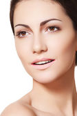 piękna kobieta twarzy modelki z naturalny makijaż, błyszczący czystość skóry