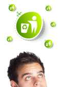 Zdjęcie "młody głowę patrząc na eko zielony znak" może być wykorzystywane do celów osobistych i komercyjnych zgodnie z warunkami zakupionej licencji Royalty-free. Obraz jest dostępny do pobrania w jakości wysokiej rozdzielczości do 5760x3840.