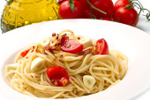 makaron z sosem pomidorowym i bazylią