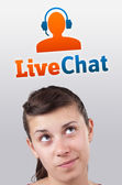 młoda dziewczyna patrząc na wsparcie kontakt typu ikony i znaki