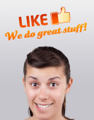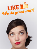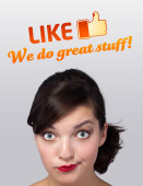 młoda dziewczyna patrząc na społeczne typ ikony i znaki