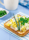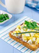 Zdjęcie "Śniadanie kanapki z jaj i zieleń" może być wykorzystywane do celów osobistych i komercyjnych zgodnie z warunkami zakupionej licencji Royalty-free. Obraz jest dostępny do pobrania w jakości wysokiej rozdzielczości do 5760x3840.