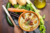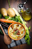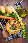 Zdjęcie "zupa warzywna na misce i składniki" może być wykorzystywane do celów osobistych i komercyjnych zgodnie z warunkami zakupionej licencji Royalty-free. Obraz jest dostępny do pobrania w jakości wysokiej rozdzielczości do 5760x3840.