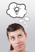 Zdjęcie "młoda dziewczyna myśli z chmury" może być wykorzystywane do celów osobistych i komercyjnych zgodnie z warunkami zakupionej licencji Royalty-free. Obraz jest dostępny do pobrania w jakości wysokiej rozdzielczości do 5760x3840.