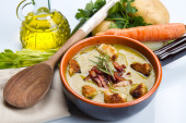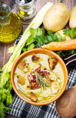 zupa warzywna na misce i składniki