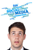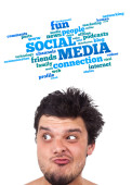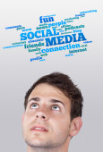 młoda dziewczyna patrząc na społeczne typ ikony i znaki