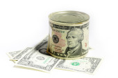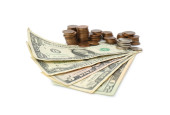 pieniądze na zakupy koszyka na białym tle na białym tle