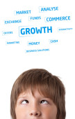 młoda dziewczyna głowę patrząc na biznes ikony i obrazy