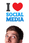 młoda dziewczyna patrząc na społeczne typ ikony i znaki