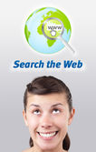 młoda dziewczyna patrząc na społeczne typ ikony i znaki