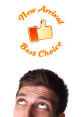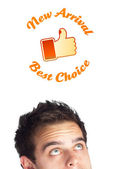 młody głowę patrząc na znaki wysyłki i zamówienia