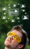 młody głowę patrząc na społeczne typ ikony i znaki