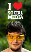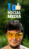 młody głowę patrząc na społeczne typ ikony i znaki