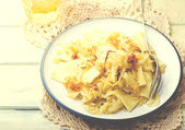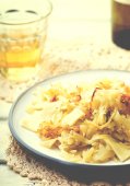Makaron z duszona kapustą.