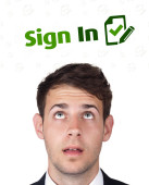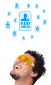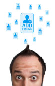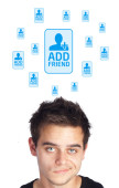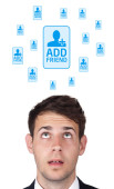 młody głowę patrząc na społeczne typ ikony i znaki