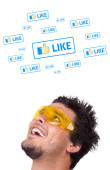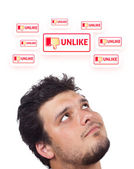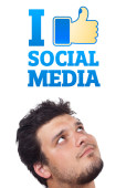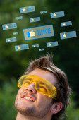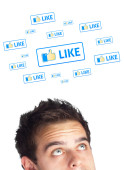 młody głowę patrząc na społeczne typ ikony i znaki