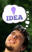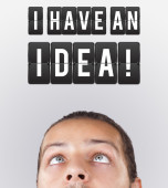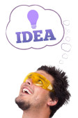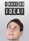 młody człowiek patrząc na typ wyobrażenie znak
