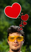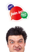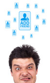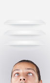 młody głowę patrząc na biały dom