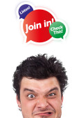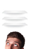 młodych osób głowę patrząc na biznes ikony i obrazy