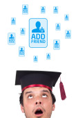 młody głowę patrząc na społeczne typ ikony i znaki