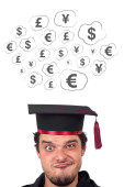 młodych osób głowę patrząc na biznes ikony i obrazy