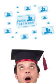 młody głowę patrząc na społeczne typ ikony i znaki