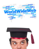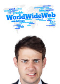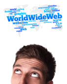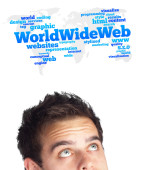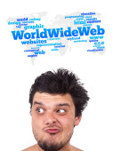 młody głowę patrząc na internet typu ikony